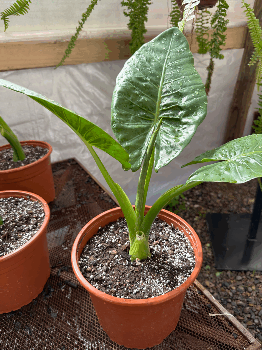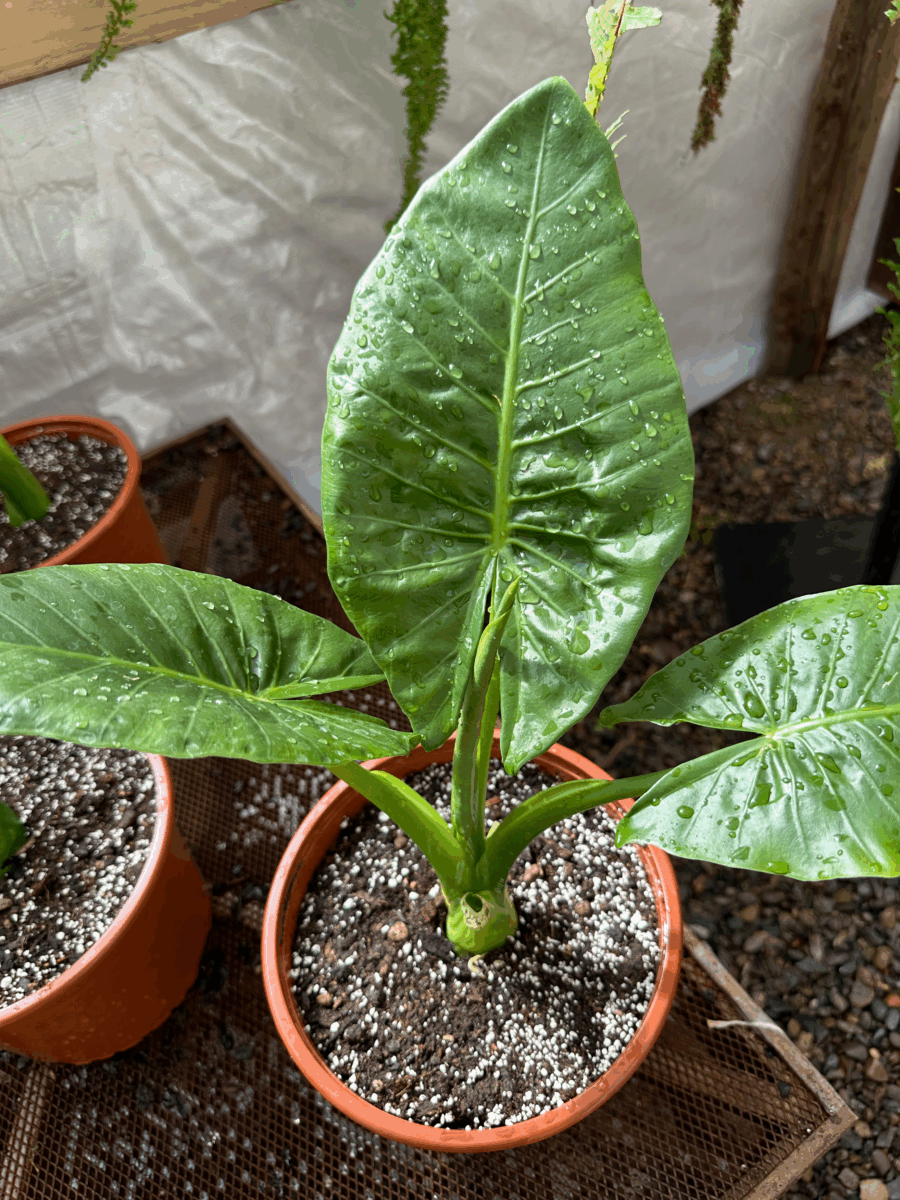 - Suelo húmedo, pero no empapado: La Alocasia macrorrhiza disfruta de un suelo ligeramente húmedo, pero no tolera el encharcamiento. El exceso de agua puede provocar pudrición de las raíces. Riega cuando la capa superior del suelo esté seca al tacto, pero asegúrate de que el agua se drene bien.